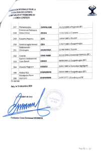 Mention spéciale aux étudiants du CFECF-BF, centre de formation dont l’ONECCA-BF est l’une des trois parties prenantes, pour les résultats remarquables enregistrés soit 83 admis sur 140 (59.29%) présentés à l’examen du DESCOGEF. Votre performance honore non seulement votre établissement, mais également l’ensemble de l’écosystème de la formation comptable au Burkina Faso. Le bureau est impatient de vous retrouver pour vos formalités de mise en stage.